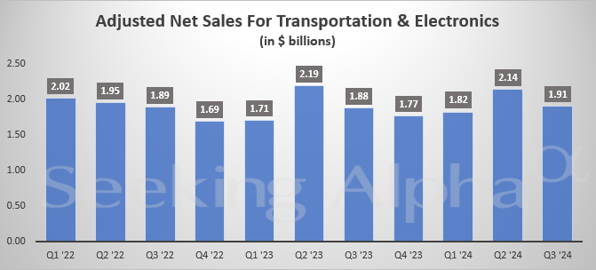 3M in charts: Transportation & Electronics adjusted net sales drop ~11% Q/Q in Q3 Posted on October 22, 2024 by wpadmin