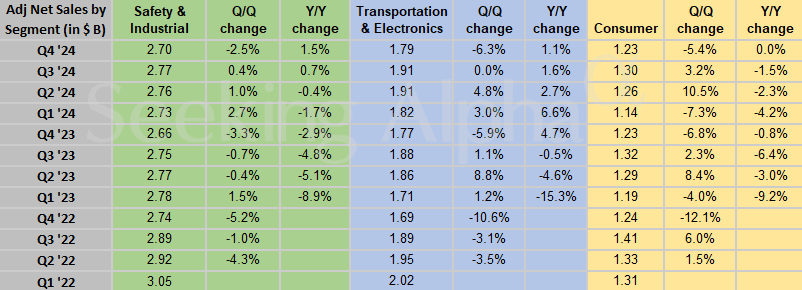 3M in charts: Adj net sales from Safety & Industrial, Transportation & Electronics drop Q/Q Posted on January 21, 2025 by wpadmin
