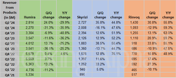 AbbVie in charts: Skyrizi, Rinvoq sales jump, while Humira revenue falls ~30% Y/Y in Q2 Posted on July 25, 2024 by wpadmin