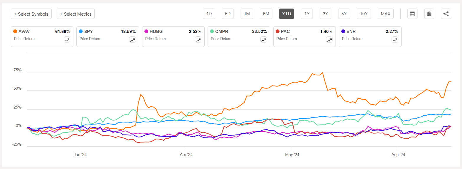Grupo Aeroportuario del Pacífico (PAC) +6.93%. The Mexican airport operator’s stock soared the most on Wednesday (+8.76%). YTD, +3.80%.