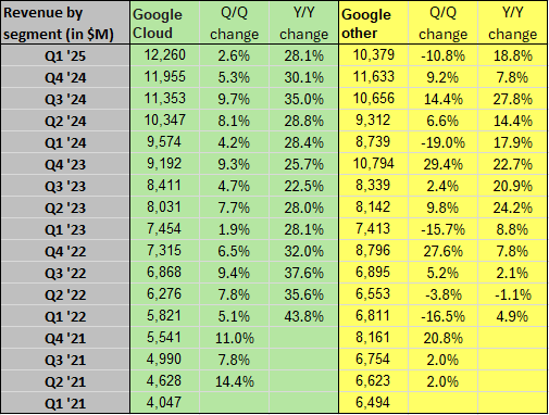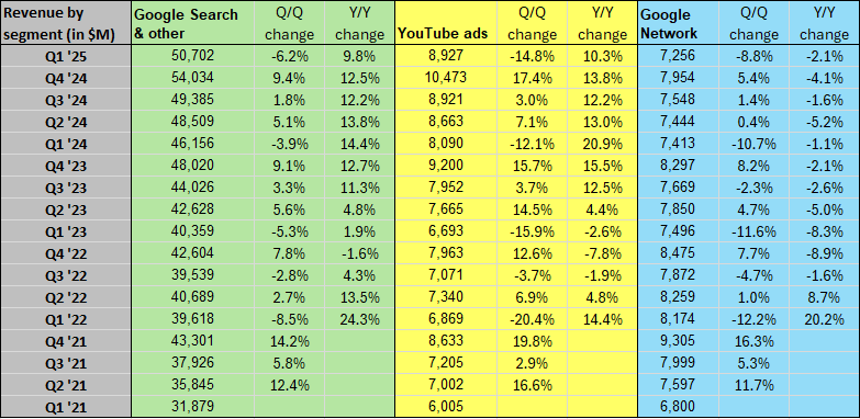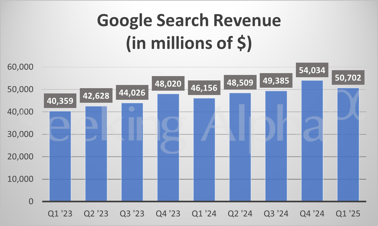 Alphabet in charts: Search revenue up 10% Y/Y Posted on April 24, 2025 by wpadmin More on Alphabet Alphabet Inc. 2025 Q1 – Results – Earnings Call Presentation Alphabet Q1 Preview: Temu Trade War (Rating Downgrade) Alphabet: It’s Just Too Cheap To Ignore Here Key takeaways from Alphabet’s Q1 earnings, as stock gains Alphabet more earnings info