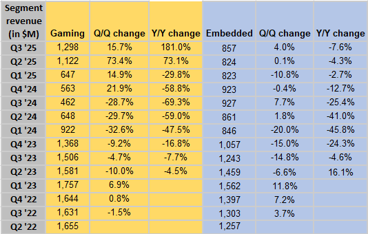 AMD in charts: Gaming revenue sees highest Y/Y rise of 181% in third quarter