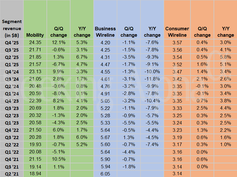 AT&T in charts: Broadband, Fiber ARPU increase Y/Y in Q4; Prepaid and Postpaid trend lower