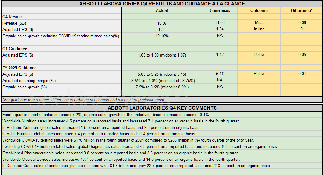 Earnings Snapshot: Abbott Laboratories Q4 misses revenue estimates; initiates Q1 and FY25 outlook Posted on January 22, 2025 by wpadmin