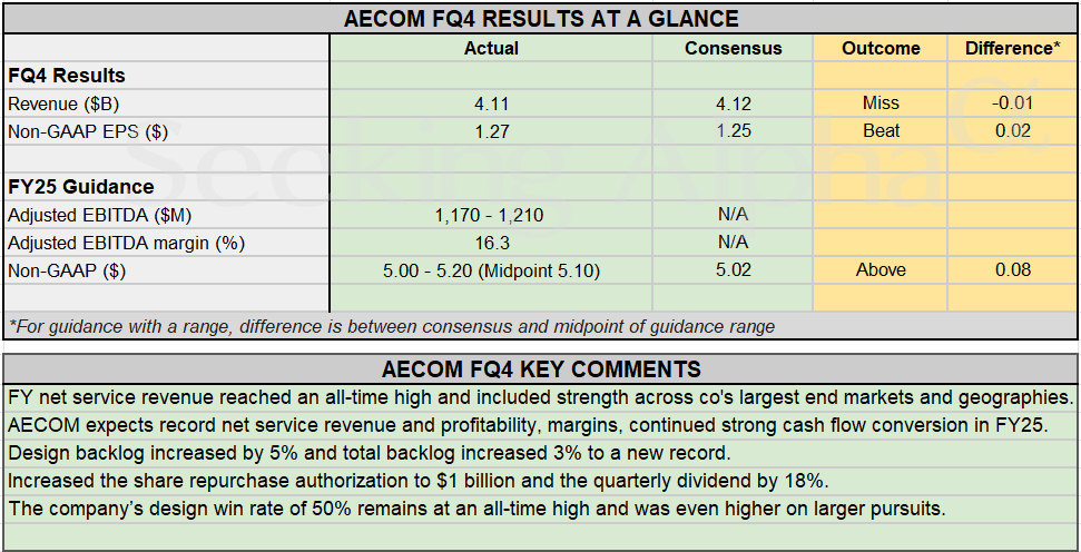 Earnings Snapshot: AECOM sets FY25 EPS guidance above estimates, posts mixed FQ4 Posted on November 18, 2024 by wpadmin