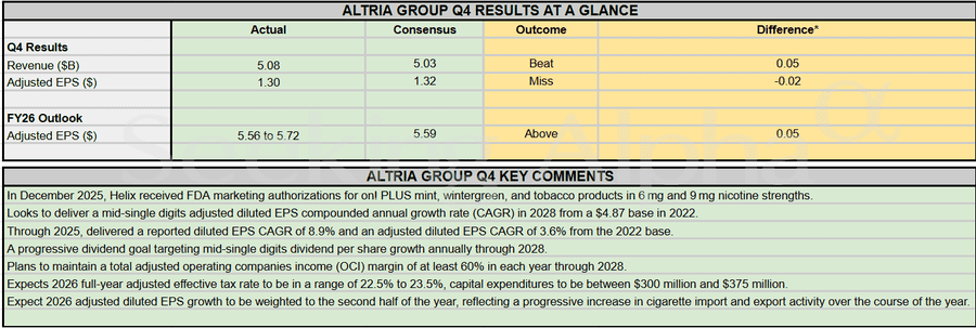 Earnings Snapshot: Altria expects 2026 EPS growth to be back-loaded on rising cigarette trade Posted on January 29, 2026 by wpadmin Seeking Alpha
