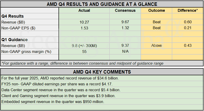 Earnings Snapshot: AMD posts record Q4 results, beating analysts’ consensus Posted on February 3, 2026 by wpadmin Seeking Alpha