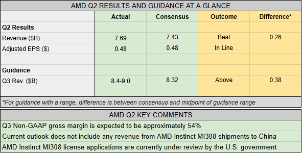 Earnings Snapshot: AMD tops Q2 revenue estimate Posted on August 5, 2025 by wpadmin More on AMD AMD: I Am Loading Up Before Q2 Earnings Inside AMD’s Most Pivotal Quarter This Is Why It’s Time To Trim Your AMD Stock Ahead Of Q2 Earnings (Downgrade) AMD Non-GAAP EPS of $0.48 in-line, revenue of $7.69B beats by $260M AMD Q2 earnings on deck: What to expect