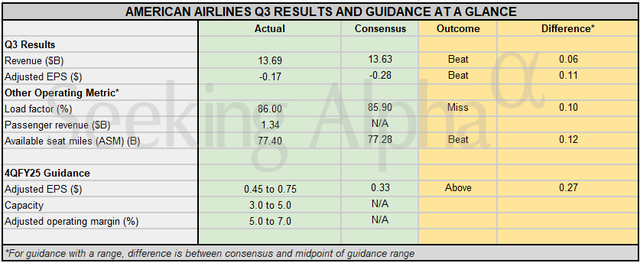 Earnings Snapshot: American Airlines posts smaller loss, guides Q4 EPS above estimates at $0.45–$0.75 Posted on October 23, 2025 by wpadmin *Other Operating Data Consensus Source: Bloomberg Seeking Alpha