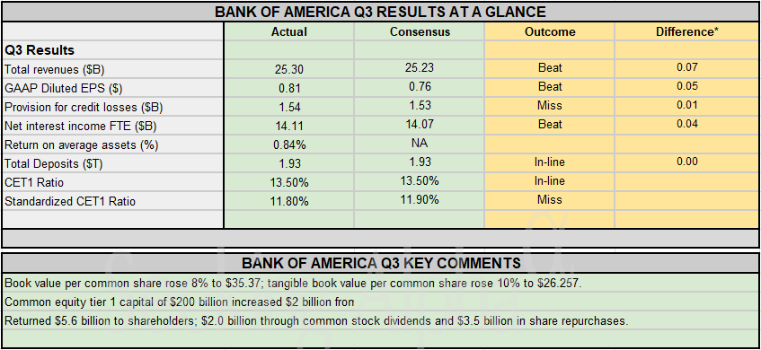 Bank of America GAAP EPS of $0.81 beats by $0.05, revenue of $25.3B beats by $70M