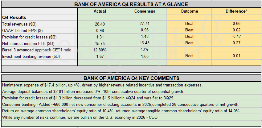 Earnings Snapshot: Bank of America tops Q4 forecasts as CEO backs U.S. growth in 2026 Posted on January 14, 2026 by wpadmin Seeking Alpha