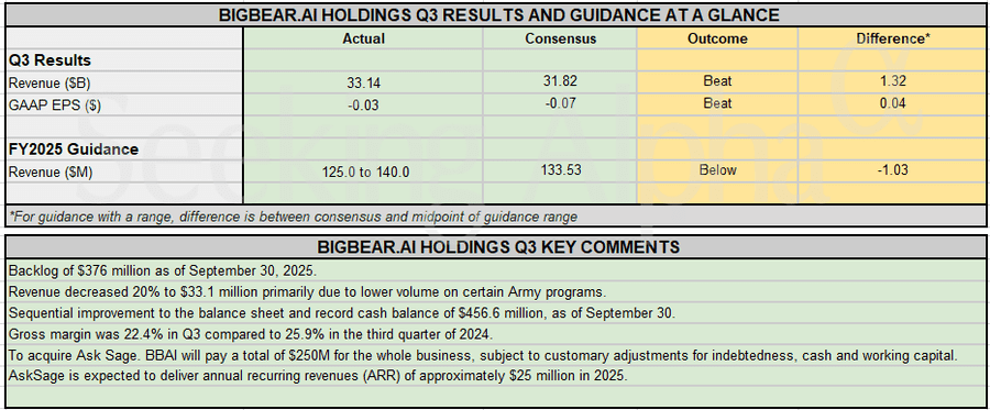 Earnings Snapshot: BigBear.ai sales outlook disappoints, bets $250 million on Ask Sage buyout Posted on November 11, 2025 by wpadmin Seeking Alpha