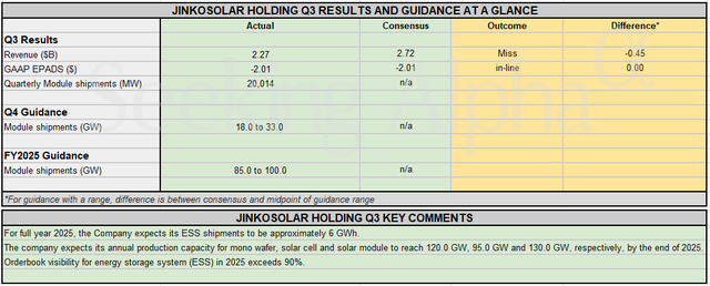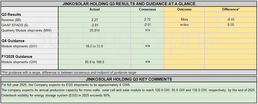 Earnings Snapshot: Jinko forecasts 18–33 GW Q4 shipments as global energy storage and solar demand accelerate Posted on November 17, 2025 by wpadmin Seeking Alpha