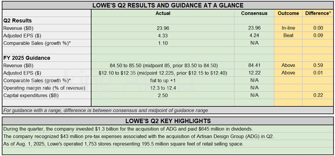 Earnings Snapshot: Lowe’s tops Q2 EPS estimates and raises FY2025 revenue outlook, but cuts EPS forecast Posted on August 20, 2025 by wpadmin