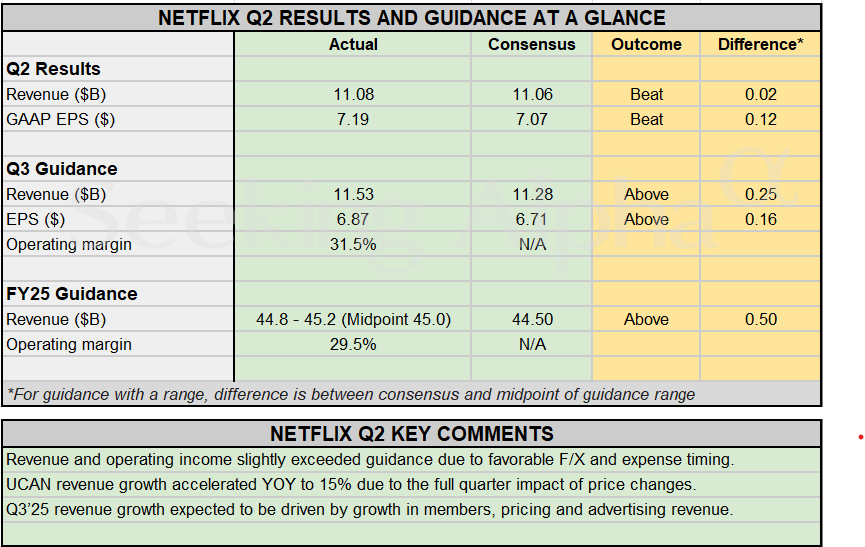 - Netflix GAAP EPS of $7.19 beats by $0.12, raises FY25 revenue guidance