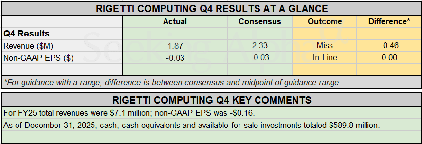 Earnings Snapshot: Rigetti Computing missed Q4 revenue estimate Posted on March 4, 2026 by wpadmin Seeking Alpha