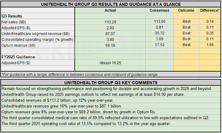 Earnings Snapshot: UnitedHealthcare tops Q3 estimates, raises FY profit outlook