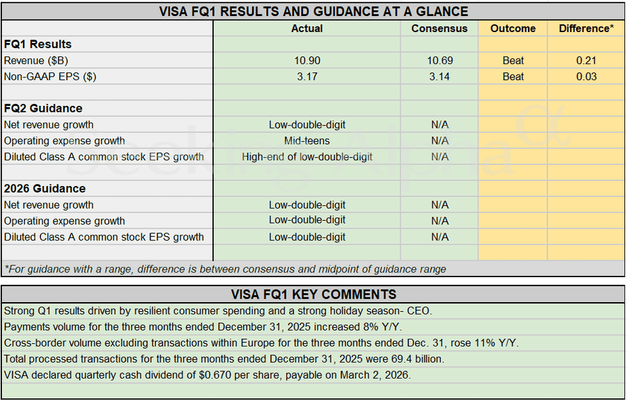 Earnings Snapshot: Visa beats Q1 estimates driven by consumer spending, strong holiday season Posted on January 29, 2026 by wpadmin Seeking Alpha