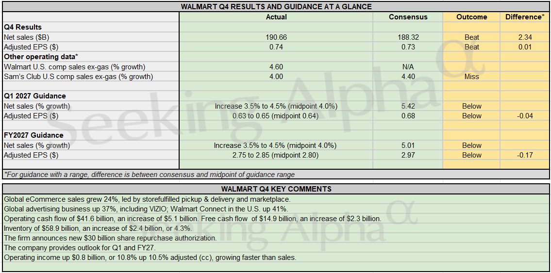 Earnings Snapshot: Walmart tops Q4 estimates; sees Q1 and FY27 outlook below forecast, sets $30B stock buyback