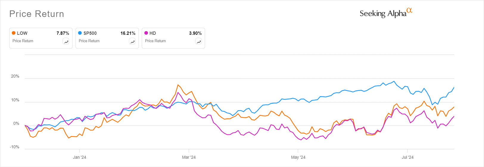 Lowe’s has outperformed Home Depot since the start of 2024 and is recommended as a Buy by Wall Street analysts. However, Seeking Alpha’s Quant Rating system maintains a Hold rating on the stock.![]()
