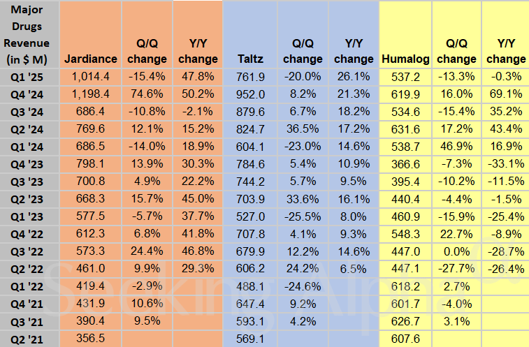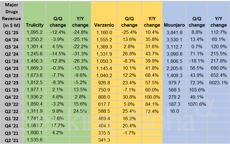 Eli Lilly in charts: Worldwide Mounjaro revenue rose 113% in Q1 Posted on May 1, 2025 by wpadmin More on Eli Lilly Eli Lilly: Why Orforglipron Matters, A Lot Eli Lilly: Positioned For Robust Q1 As Orforglipron Enhances Long-Term Outlook 5 Reasons To Buy Eli Lilly Eli Lilly misses bottom-line estimates; updates FY25 outlook Eli Lilly Q1 2025 Earnings Preview