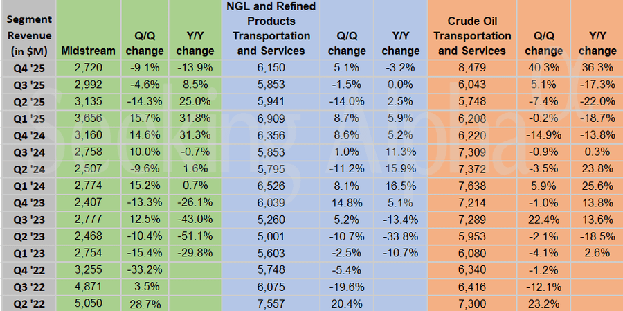 Energy Transfer in charts: Midstream revenue drops 14% while crude oil transport & services rise 36% Y/Y Posted on February 17, 2026 by wpadmin Seeking Alpha Seeking Alpha Seeking Alpha Seeking Alpha Seeking Alpha Seeking Alpha