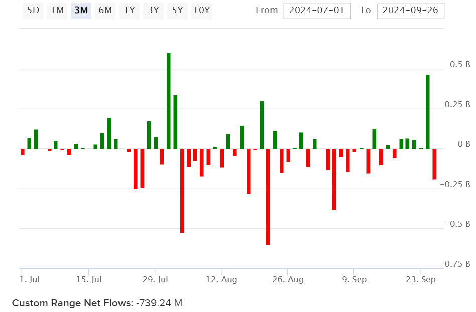 The Energy Select Sector SPDR Fund ETF (NYSEARCA:XLE), which tracks the S&P 500 energy sector (SP500-10), was the only S&P 500 sector that fell 3.7% in the third quarter of 2024 compared to Wall Street’s benchmark index, S&P 500, which hit record highs, closing the quarter