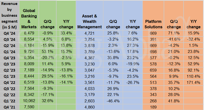 Goldman Sachs in charts: Net interest income up 75% Y/Y; Global Banking and Markets up 33% Y/Y Posted on January 15, 2025 by wpadmin