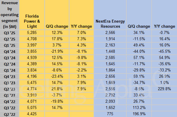 NextEra Energy in charts: Energy Resources revenue dips Y/Y in Q3, earnings +30.2% Posted on October 28, 2025 by wpadmin Seeking Alpha Seeking Alpha Seeking Alpha Seeking Alpha Seeking Alpha