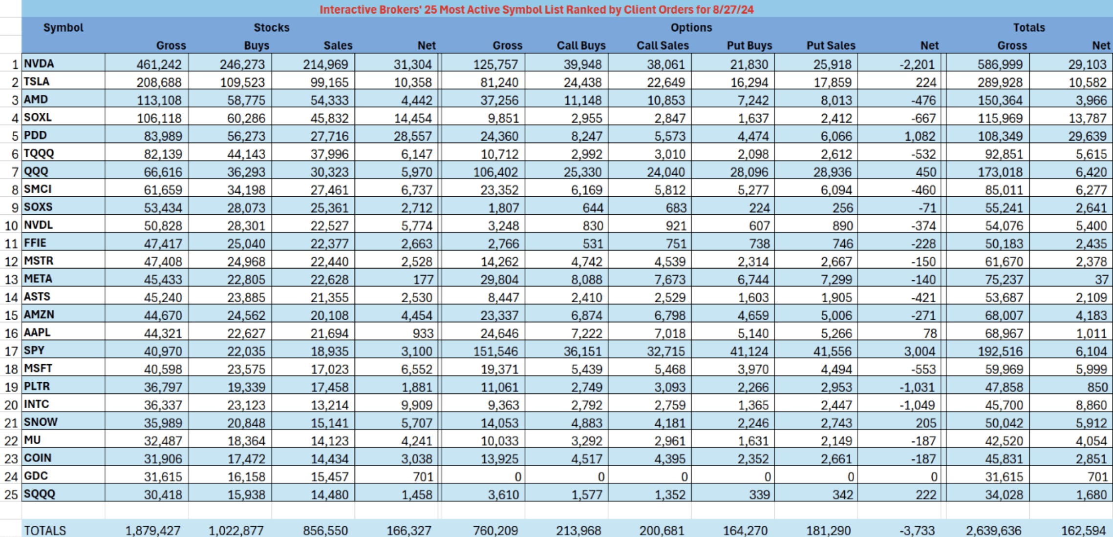 While Nvidia (NASDAQ:NVDA) was atop Interactive Brokers’ (IBKR) weekly most-active list, the symbols tied to the AI chipmaker in the ranking underscored the company’s impact on the broader market, the trading platform said before Nvidia released its Q2 earnings report.
