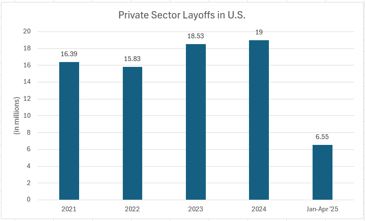 US private sector layoffs in the past five years (U.S. Bureau of Labor Statistics)