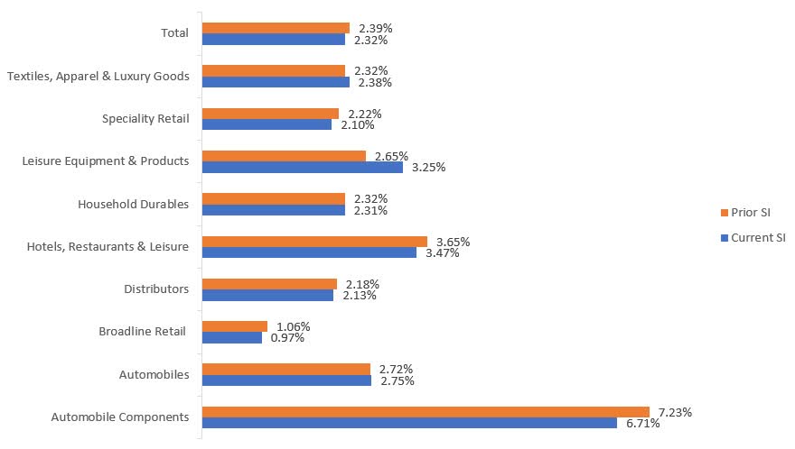 Automobile Components was the most shorted industry within the sector, with 6.71% short interest as of the end of October, marginally down from 7.23% at the end of September.