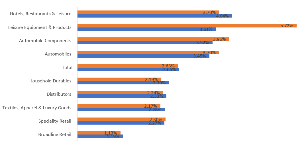 Hotels, Restaurants & Leisure were the most shorted industries within the sector, with 4.04% short interest as of the end of June, which increased from 3.70% at the end of May.