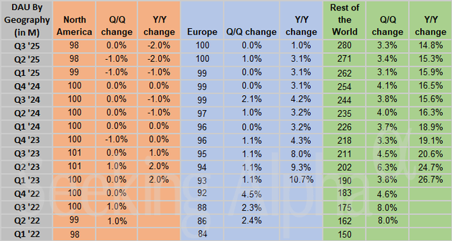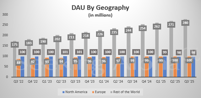 Snap in charts: North America DAU continues to decline Y/Y in Q3 Posted on November 5, 2025 by wpadmin Seeking Alpha Seeking Alpha Seeking Alpha Seeking Alpha Seeking Alpha Seeking Alpha Seeking Alpha