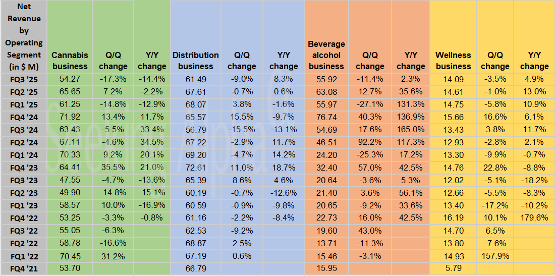 Tilray Brands in charts: Revenue slipped sequentially across all business segments in FQ3 Posted on April 8, 2025 by wpadmin More on Tilray: Tilray Brands Is Now A Strong Buy Tilray Short Interest Surges Again Tilray: Improved Balance Sheet And Reasonable Valuation (Rating Upgrade) Tilray reports mixed Q3 results; updates FY25 outlook Tilray Q3 2025 Earnings Preview: Analysts expect a double-digit rise in revenue