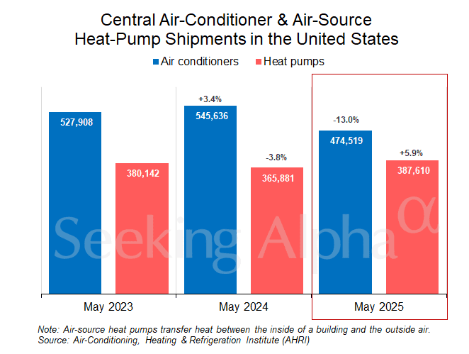 In contrast, air-source heat pumps rose 5.9% to 387,610 units in May.