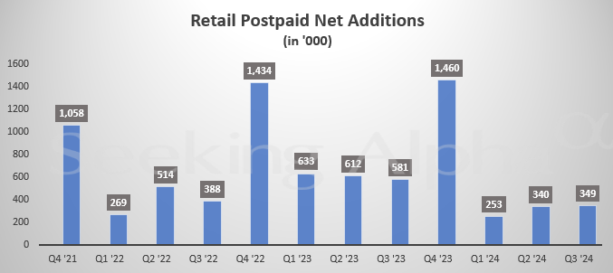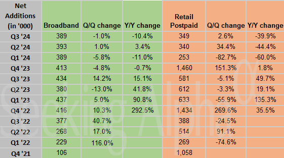 Verizon in charts: Broadband net additions drop 10% Y/Y, retail postpaid falls 40% in Q3 Posted on October 22, 2024 by wpadmin