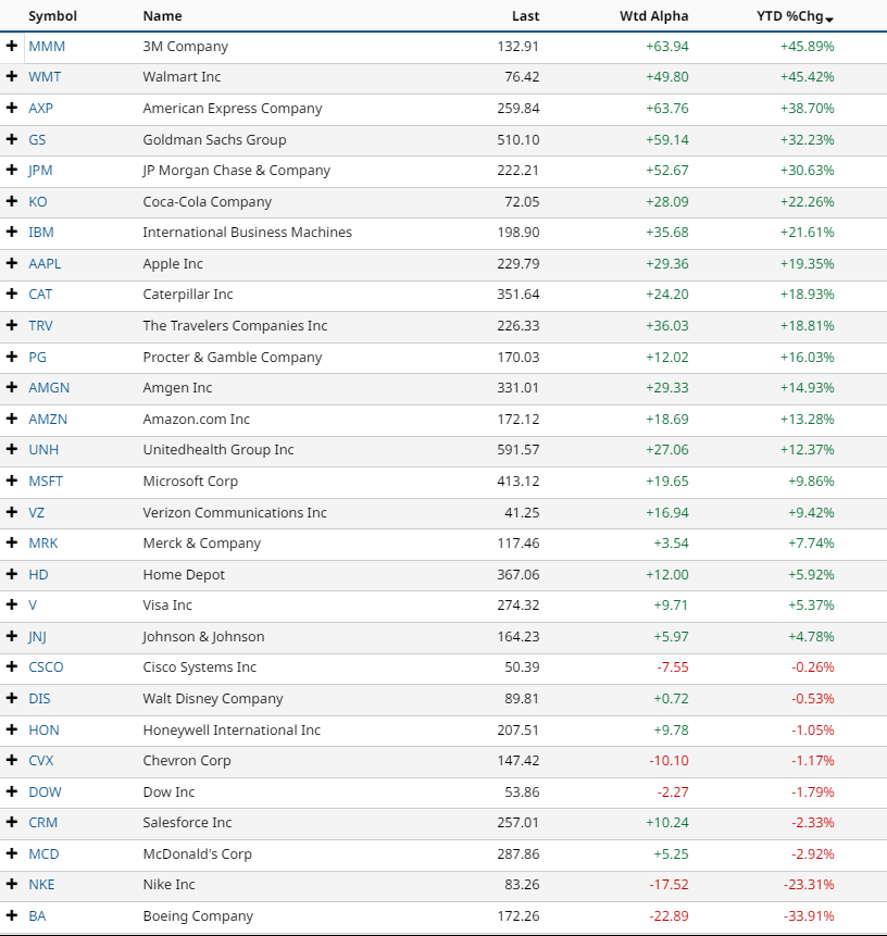 - 3M’s Q2 earnings report was exceptionally strong, leading to a 23% stock surge and a 46% YTD performance, the best in the DJIA.