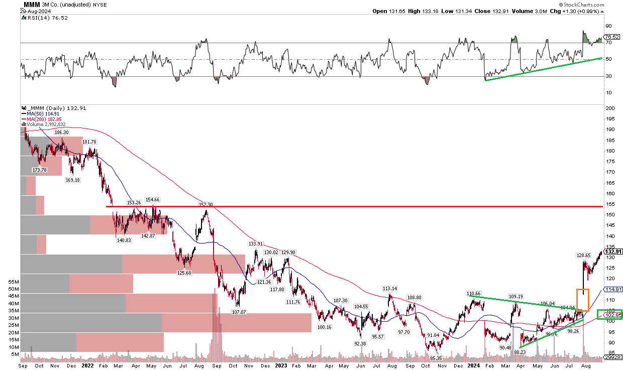 MMM: Healthy Technicals, $155 Resistance, Rising 200dma