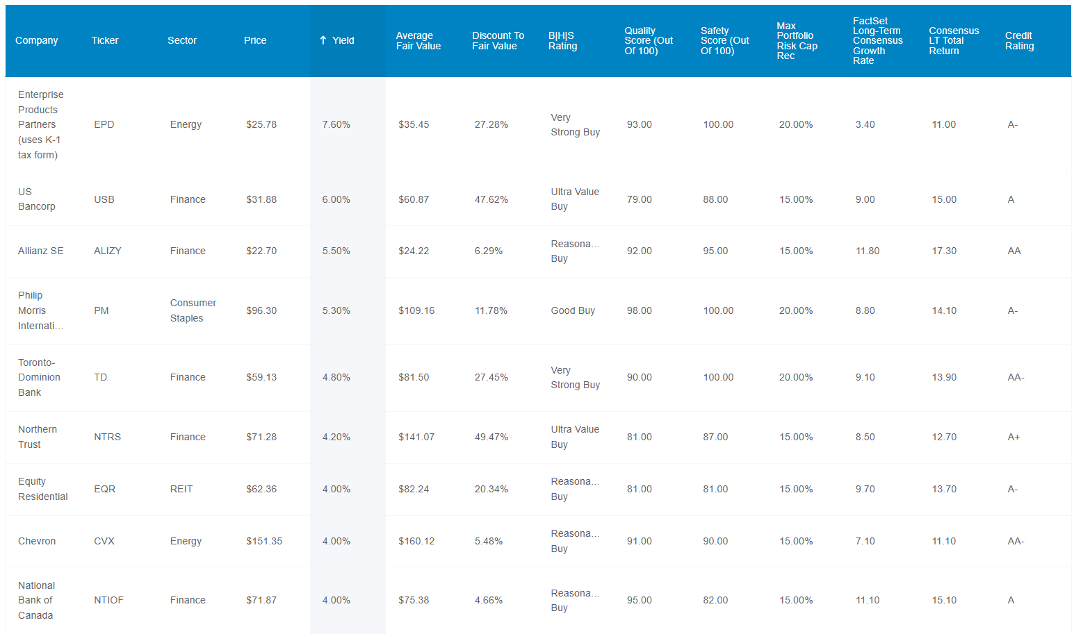 Investment Strategy Yield LT Consensus Growth LT Consensus Total Return Potential Long-Term Risk-Adjusted Expected Return