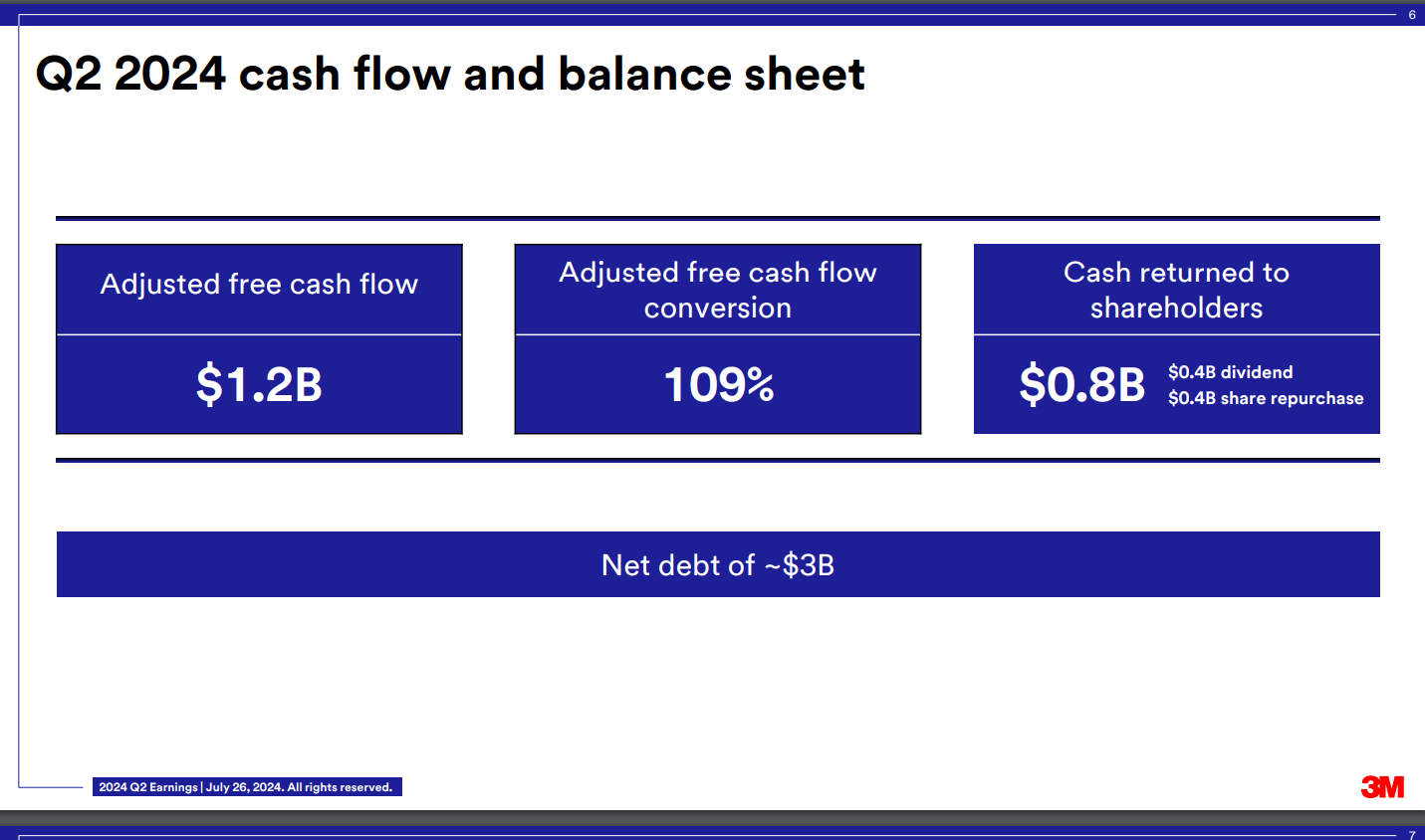 3M cash flow conversion and key balance sheet metrics (3M filings)
