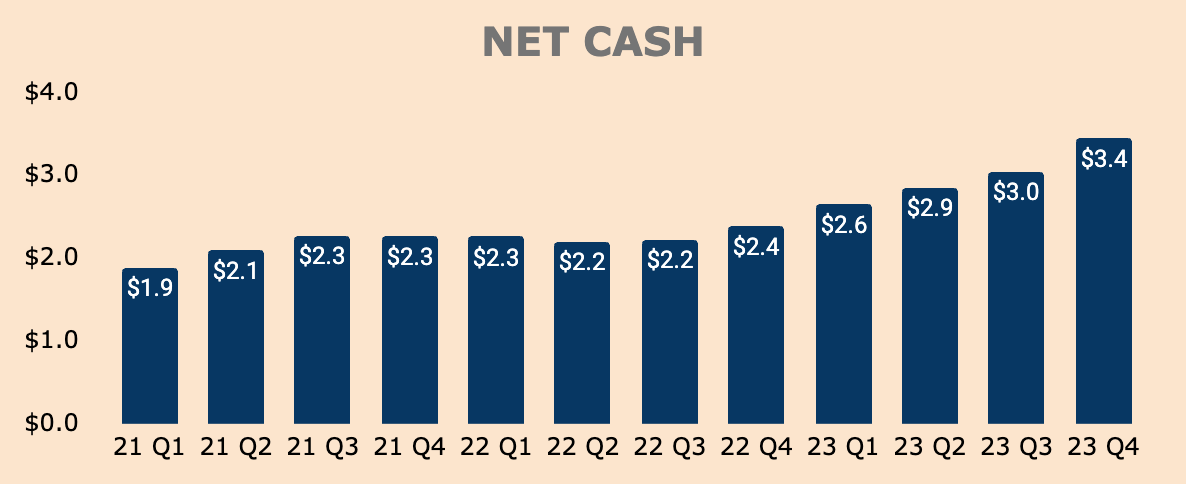 The cherry on top is that Palantir has virtually no debt with a Net Cash position of about $3.4B — and expanding.