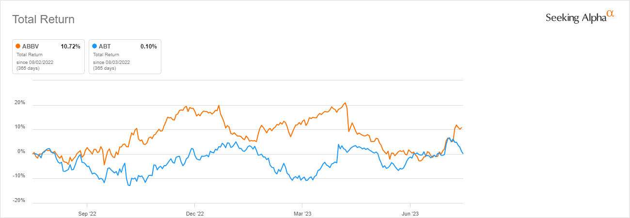 Looking at ABT and ABBV individually, they both have performed quite well over the last 12 months.
