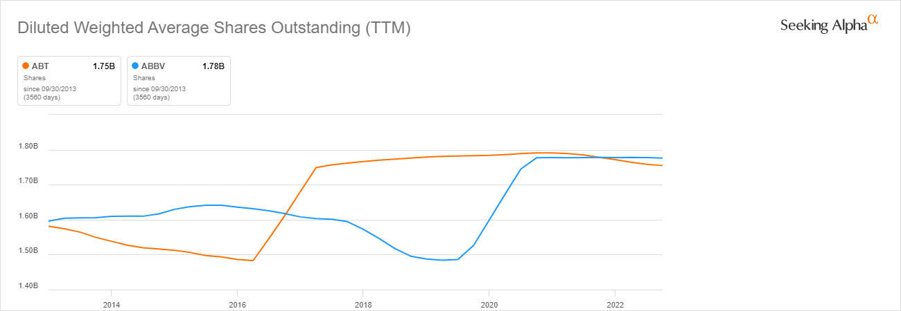 Both Abbott and AbbVie have increased their dividend every year for the last nine years.