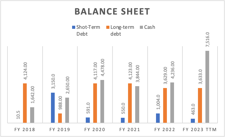 Examining Adobe’s balance sheet, it remains robust, although the impending acquisition of Figma for $20B (excluding investment banking fees and legal expenses) could significantly impact it. Nevertheless, at first glance, Adobe could retire its entire debt and still retain $3.42B in cash.