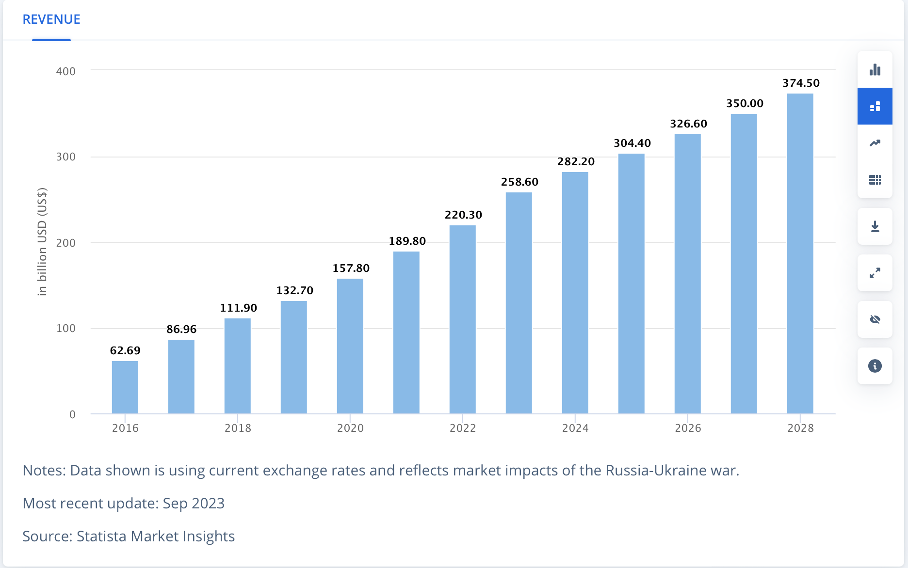 Revenue of the Global SaaS Market (2023-2028) (Statista)