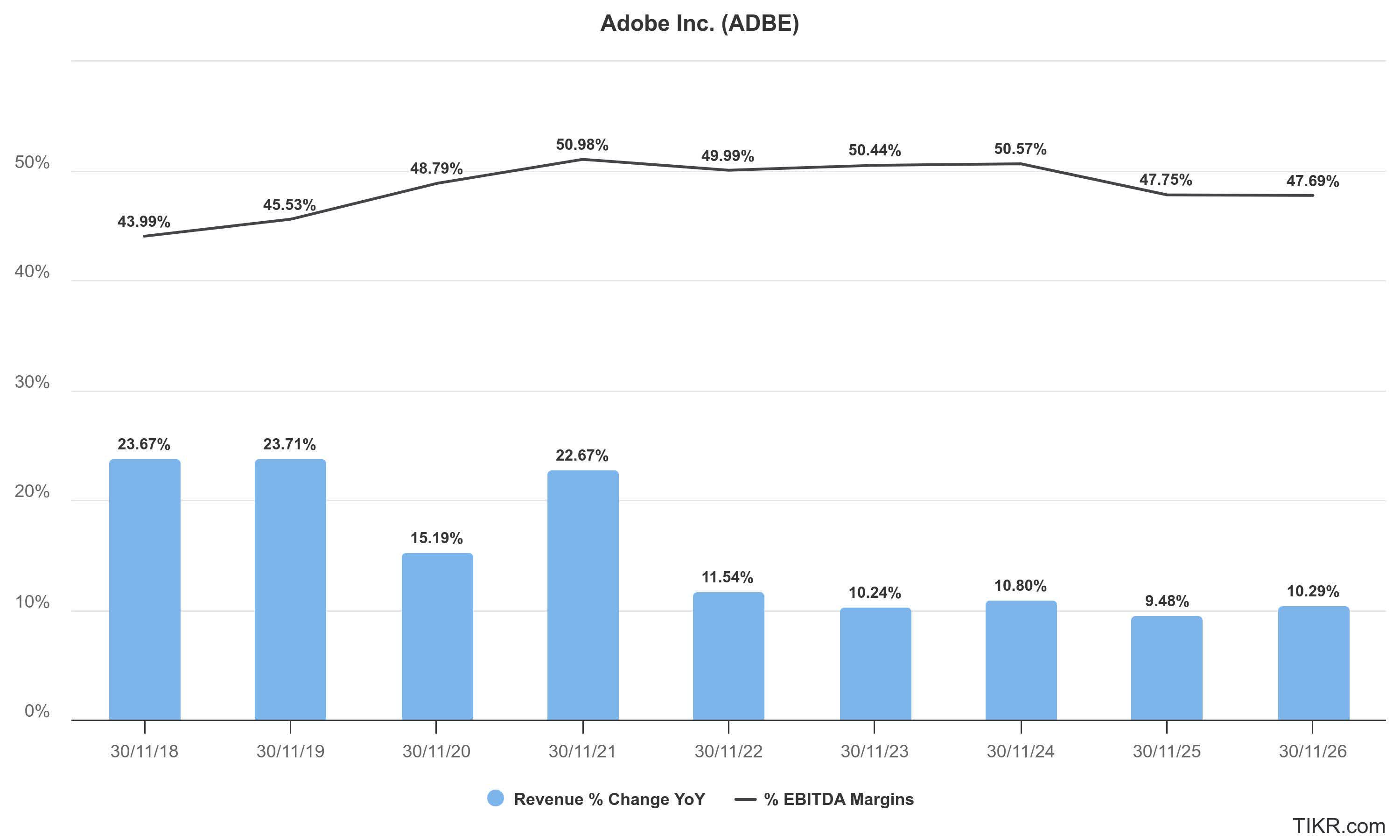 - Management’s underwhelming guidance suggests patience is needed as Adobe navigates near-term monetization headwinds.