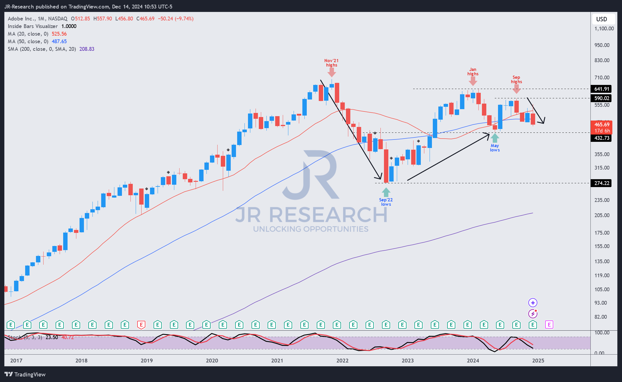 ADBE is still priced for growth. Hence, the possibility of further disappointment could weigh on its already well-battered sentiments. The post-earnings pullback could also threaten to untether its May 2024 bottom, potentially leading to a steeper retracement moving ahead.