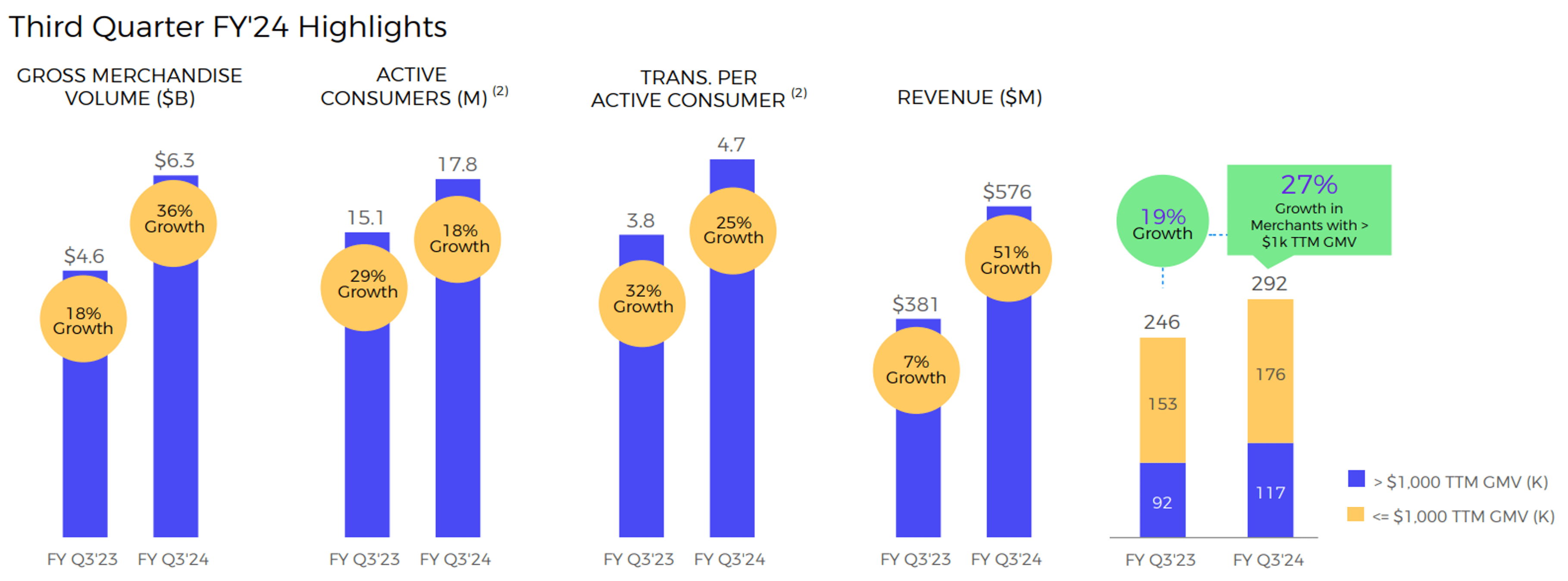 At the same time, the growing AAPL partnership may also deliver the much needed boost to AFRM’s performance metrics as well, since we are starting to see consumer acquisition and transaction per active consumer growth decelerate on a YoY basis in FQ3’24.