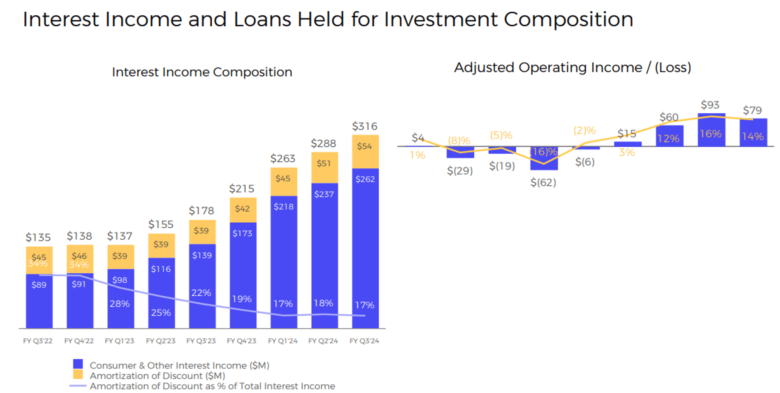 This will also build upon AFRM’s robust FQ3’24 30+ days delinquency rate of 2.3% (-0.1 points QoQ/ inline YoY), 60+ days of 1.4% (inline QoQ/ YoY), and 90+ days of 0.6% (-0.1 QoQ/ inline YoY), relatively inline compared to FY2019 averages of 2.32%, 1.32%, and 0.62%, respectively.